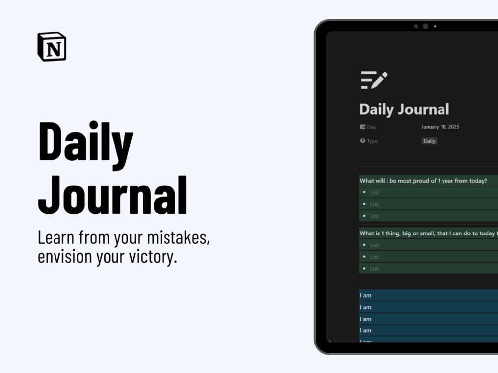 Journaling Notion Template 2025: Learn from your mistakes, envision your victory.