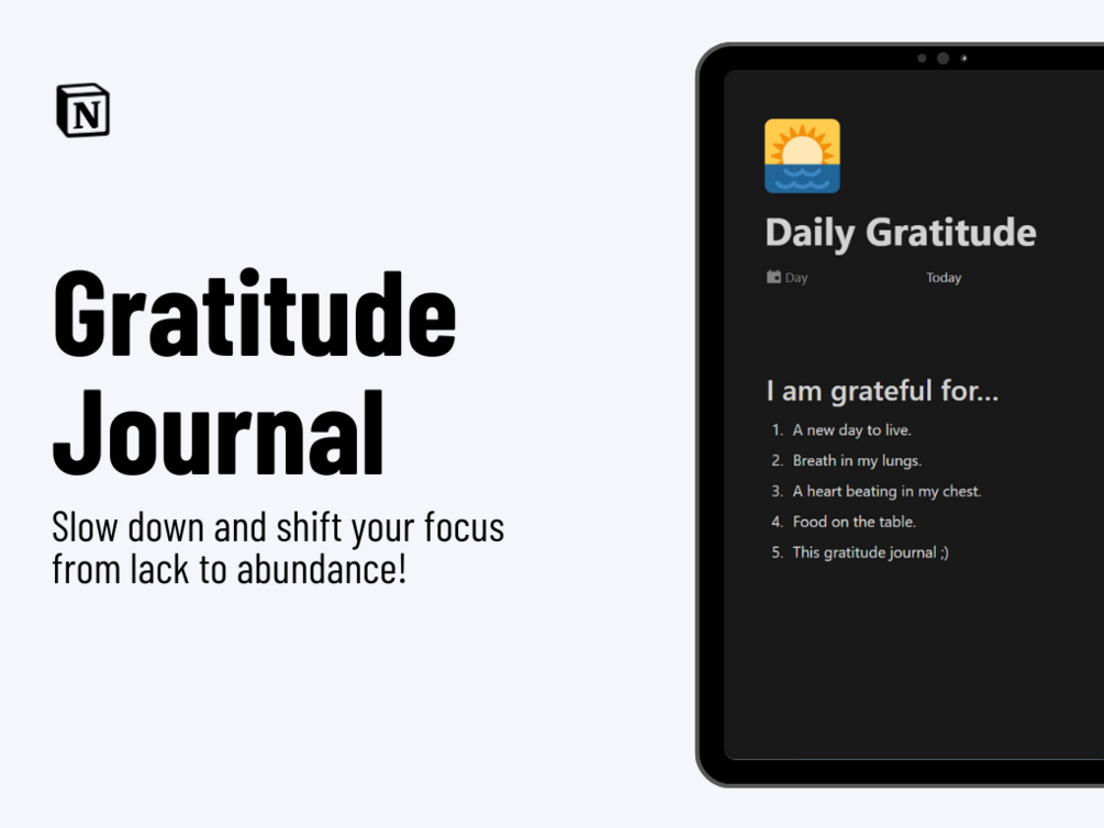 A simple Notion template for gratitude journaling.