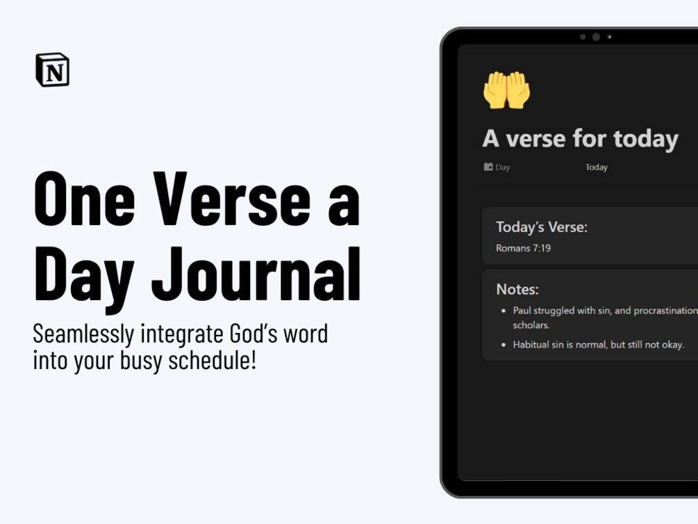 Simple Daily Devotional Notion Template 2025: Learn from God's word, one verse at a time.